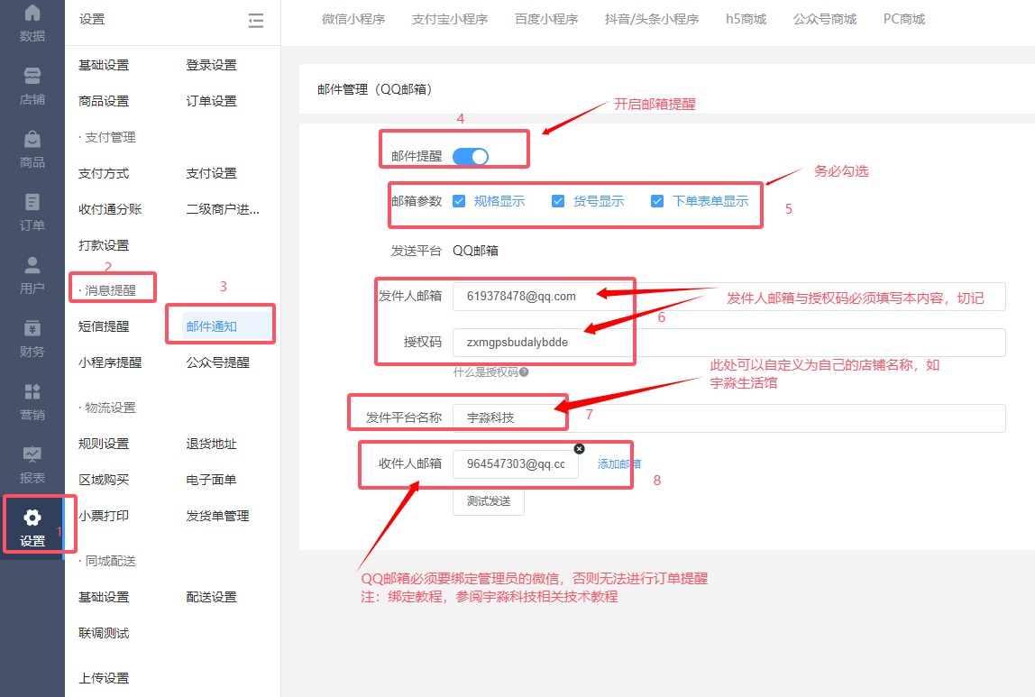 如何將QQ郵箱綁定到宇淼超級(jí)商城系統(tǒng)中,實(shí)現(xiàn)用戶訂單自動(dòng)提醒